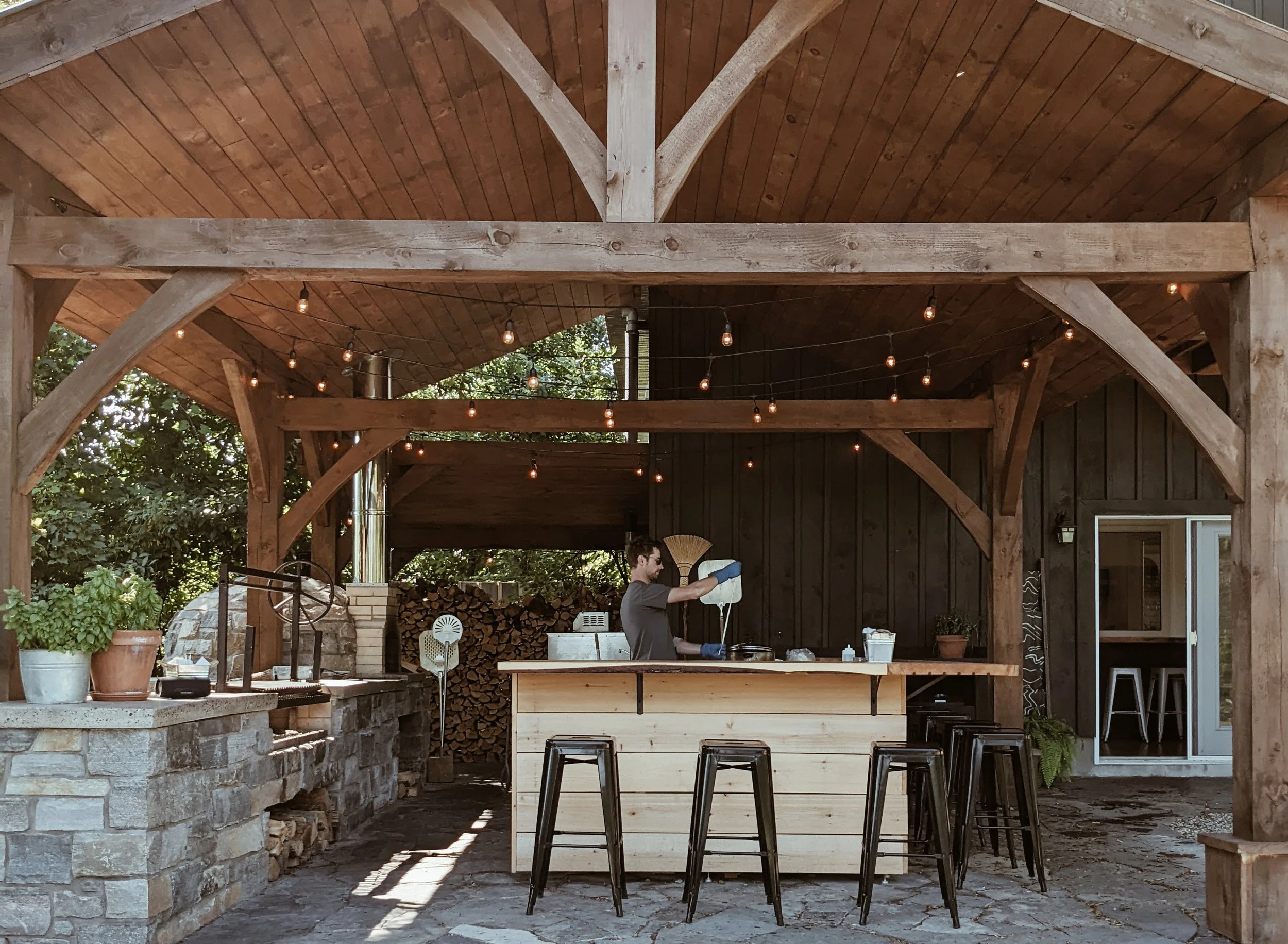 We do not take reservations, but for groups of 8 or more, advanced notice is appreciated. Guests can settle at picnic tables, Muskoka chairs, or bar seating. The facilities are simple and clean, and the setting is rustic — in North Frontenac, you may spot the occasional black fly or mosquito during warmer months, all part of the countryside dining experience.